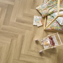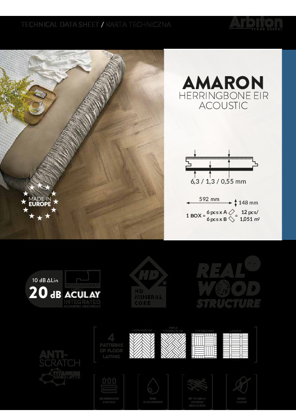 Arbiton Amaron Herringbone kombinerar känslan av klassisk parkett med slitstyrkan och enkelheten hos ett modernt styvt vinylgolv. Kollektionen är framtagen för både hem och lättare offentliga miljöer och ger ett naturtroget träutseende i ett smidigt fiskbensformat - med stabil mineralbaserad kärnteknik.