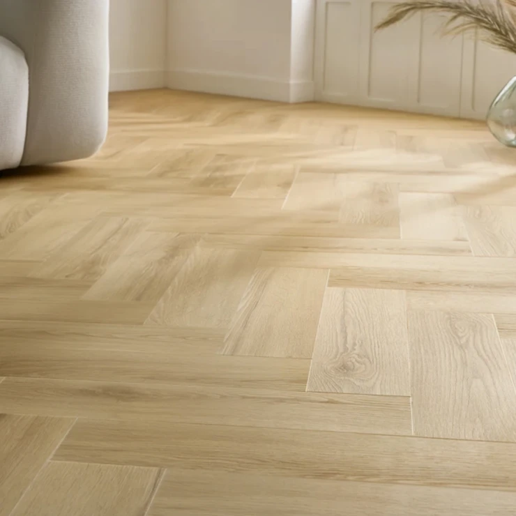 Arbiton Amaron Herringbone kombinerar känslan av klassisk parkett med slitstyrkan och enkelheten hos ett modernt styvt vinylgolv. Kollektionen är framtagen för både hem och lättare offentliga miljöer och ger ett naturtroget träutseende i ett smidigt fiskbensformat - med stabil mineralbaserad kärnteknik.