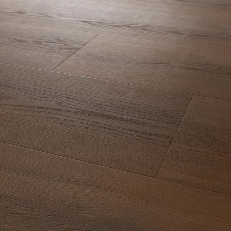 Golvet är skyddat med en slitstark titannano-beläggning som ökar motståndet mot repor och vardagligt slitage. R9 halkklass bidrar till trygg gångkomfort, medan den diskreta mikrofogen runt plankorna förstärker plankutseendet och ger ett exklusivt helhetsintryck.