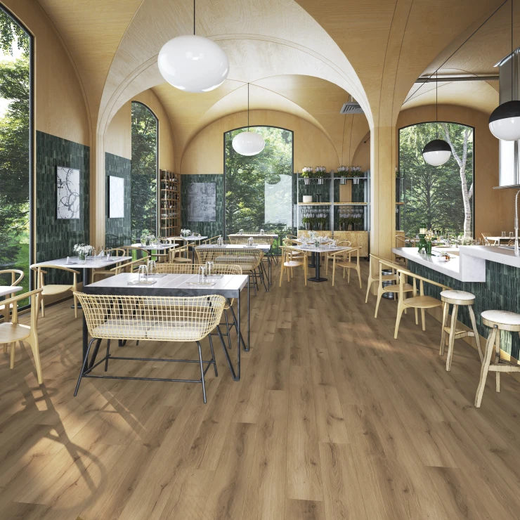 ROBLE ULTRAMATT är konstruerat med en 100 % vattentät, styv kärna av SPC och erbjuder förbättrad motståndskraft och dimensionsstabilitet jämfört med vanliga vinylgolv. Den mineralbaserade strukturen säkerställer att golvet förblir stabilt även vid exponering för temperaturvariationer eller måttligt solljus.