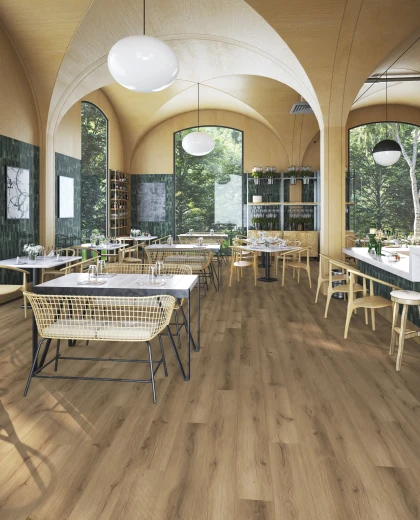 ROBLE ULTRAMATT är en premiumkollektion av SPC-golv utvecklad för interiörer som eftersträvar det mest autentiska trägolvsutseendet möjligt. Den ultramatta ytan ger en exceptionellt naturtrogen känsla och skapar en varm, elegant och modern atmosfär. Plankformatet 23x184,2 cm framhäver den naturliga ekdesignen, medan den djupa strukturen och EIR-präglad yta följer träets ådring med imponerande precision. Kollektionen finns i fyra eleganta nyanser inspirerade av europeisk ek.