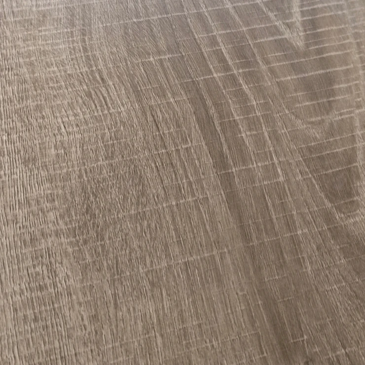 Dess rustika utseende förstärks av EIR-prägling (Embossed in Register), där ytstrukturen exakt följer träets kvistar och ådring, vilket ger en mycket realistisk och taktil finish.