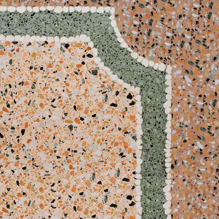 Terrazzo från Grandinetti följer de gamla recepten, tillverkat av marmor, cement, naturliga färgämnen och vatten. Hela produktionsprocessen av plattorna sker i ett litet familjeföretag i Italien som har handtillverkat terrazzo i mer än 100 år.