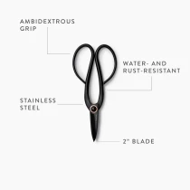 • De rundade handtagen ger bekvämt grepp och extra hävkraft vid tyngre uppgifter, medan den smala trimsaxen gör det enkelt att arbeta med precision bland blad och blommor. Den ambidextra utformningen gör dem lika lättanvända för höger- som vänsterhänta. Vatten- och rosttålig konstruktion säkerställer lång livslängd – perfekta för både hobbyodlare och professionella trädgårdsmästare.