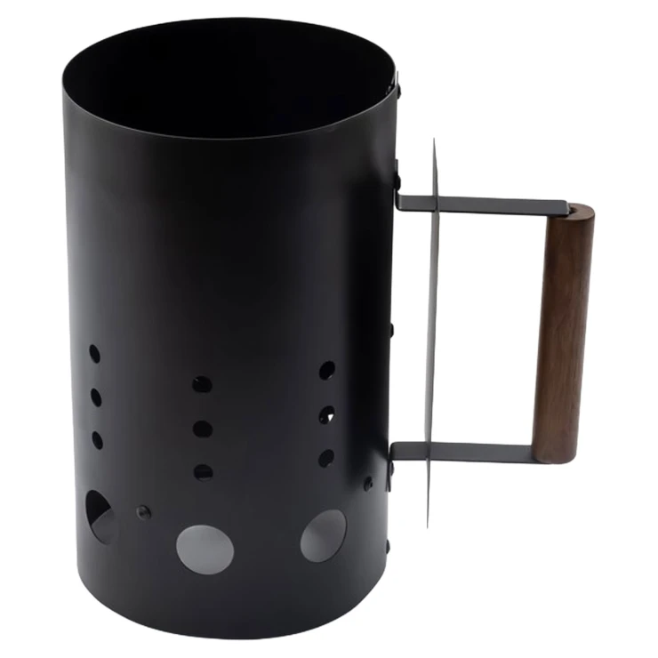 • Grillstartaren är det perfekta verktyget för att snabbt och enkelt få kol eller briketter redo för grillning. Tillverkad i värmebehandlat stål med ett bekvämt handtag i trä, gör den upptändningen säkrare och mer effektiv. Passar utmärkt för grillar, eldstäder och rökar.