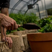 • - Djup form och höga kanter för effektiv hantering av jord och plantering