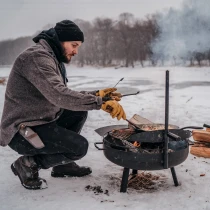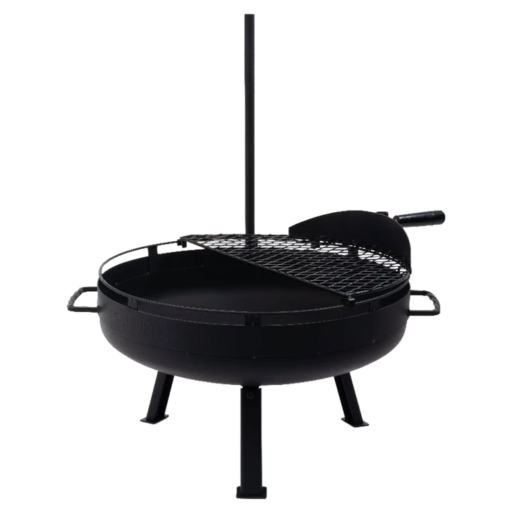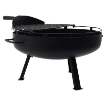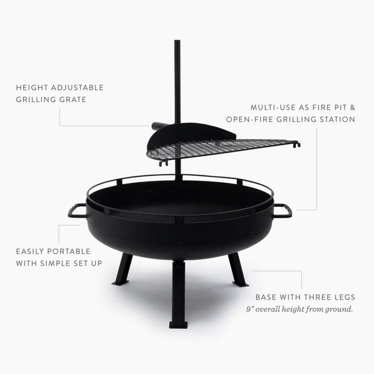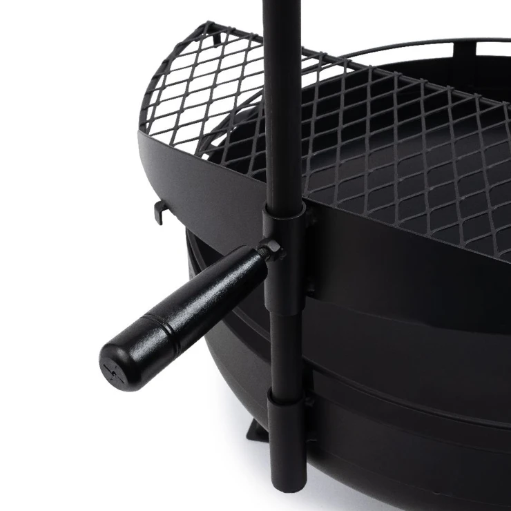 • Setet levereras med ett stabilt stativ och ett grillgaller som kan justeras i höjd för att enkelt kontrollera temperaturen vid matlagning. Den kan användas som eldstad, grill eller matlagningsstation, perfekt för både trädgården och campingresor. Den robusta konstruktionen i stål ger lång hållbarhet och enkel rengöring efter användning.