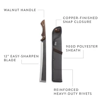 • - Material: 4Cr13 rostfritt stål, valnöt, 900D polyester, koppardetaljer