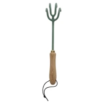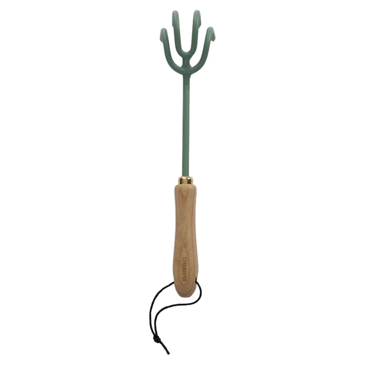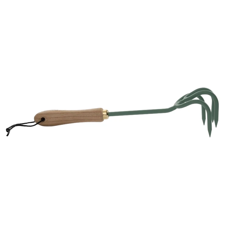 • Det ergonomiska trähandtaget ger ett bekvämt grepp och minskar belastning vid längre arbetspass, medan de värmebehandlade tänderna i rostfritt stål garanterar hållbarhet över tid. Välj mellan två utföranden: valnöt och svartoxiderat stål för en naturlig, rustik känsla eller ask och mintfärgad emalj för en modern och färgstark kontrast i trädgården.