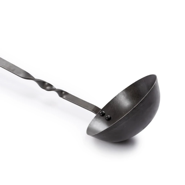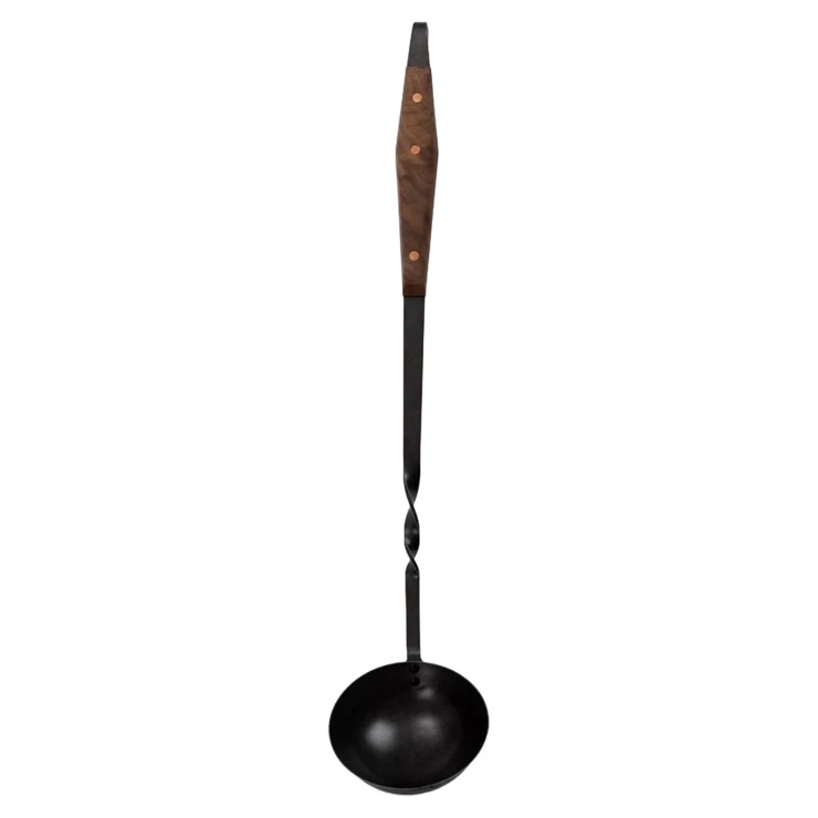 • Klassisk soppslev för matlagning över öppen eld – perfekt för att ösa såser, soppor och grytor. Tillverkad i handsmitt, svartoxiderat rostfritt stål och har ett naturligt valnötshandtag som håller sig svalt även vid hög värme.