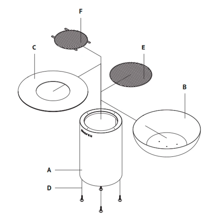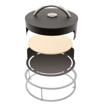 2. Subbel Stålring för Grill: Detta stabila stativ i svart stål placeras i mitten av BonBiza och fungerar som bas för tillbehör som pizzaugn, spett-ring eller grill för stativ. Tack vare sin vikt och exakta passform ger stativet hög stabilitet under matlagningen.