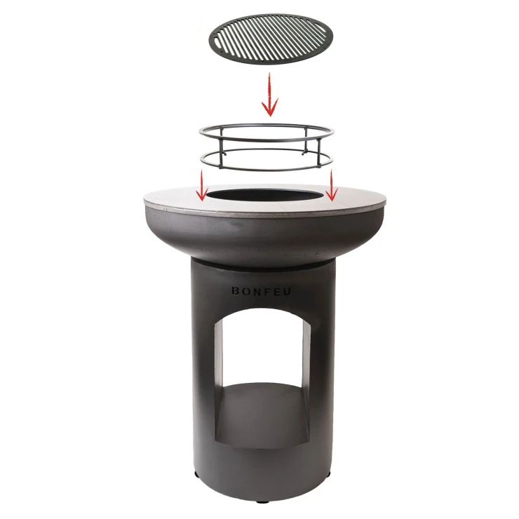 BonFeu Set med BonBiza Eldstad Öppen Svart, Subbel Stålring för Grill & Grillgaller Rund
