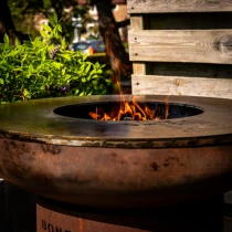 BonBiza är mer än en traditionell grill – det är ett komplett utomhuskök designat för både grillning och plancha-matlagning. Tillverkad av väderbeständigt kolstål med cortenfinish kombinerar den hållbarhet, funktion och ett naturligt rustikt utseende. Med sin generösa matlagningsyta på Ø80 cm är BonBiza perfekt för att tillaga hela måltider för upp till åtta personer.