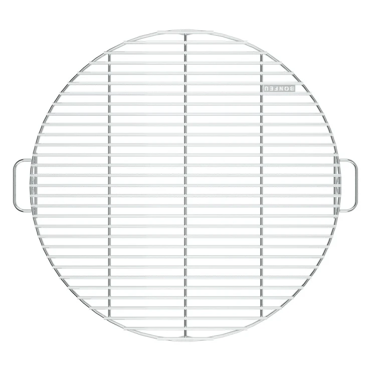 Det robusta BonFeu BonGrill 80 är ett fullt runt grillgaller i stål, särskilt anpassat för BonBowl och BonBowl Plus Ø80 cm. Med sin diameter på Ø82 cm förvandlar det eldstaden till en funktionell grillstation. Gallret placeras enkelt på eldstadens kant och hålls stadigt på plats med hjälp av stabiliserande sidopinor. Den öppna designen ger optimal värmeöverföring och luftcirkulation, vilket ger perfekta grillresultat för kött, fisk eller grönsaker. De två integrerade handtagen gör det enkelt att lyfta, placera och rengöra även när det är varmt.
