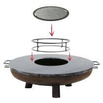 BonFeu Sæt med BonBowl Plus Ildskål Cortenstål 80 cm, Plancha, Dobbelt Stålring til Grill & Rundt Grillrist