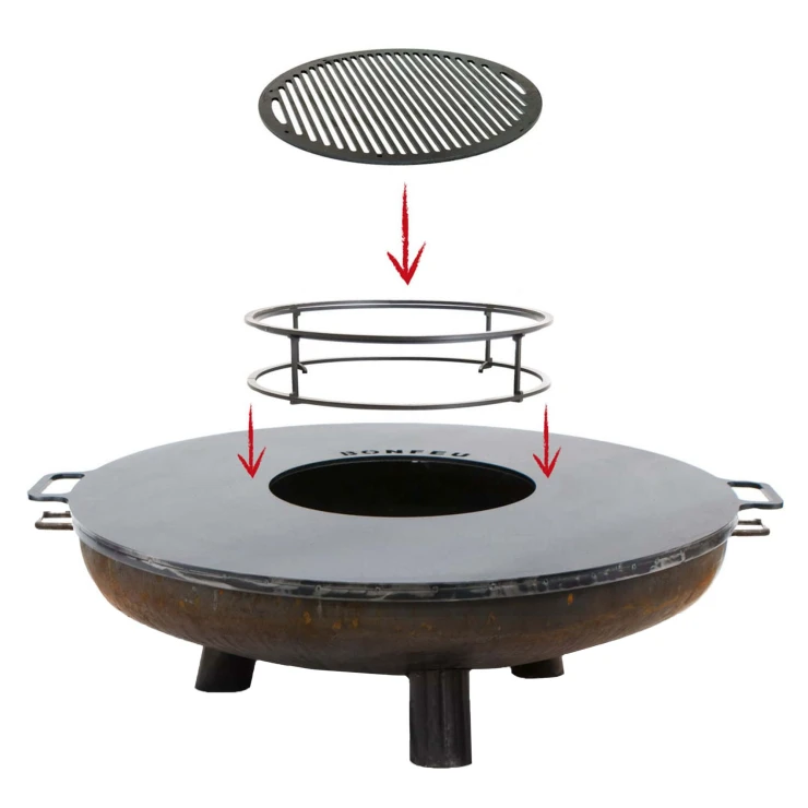 BonFeu Set med BonBowl Plus Eldskål Cortenstål 80 cm, Plancha, Subbel Stålring för Grill & Grillgaller Rund