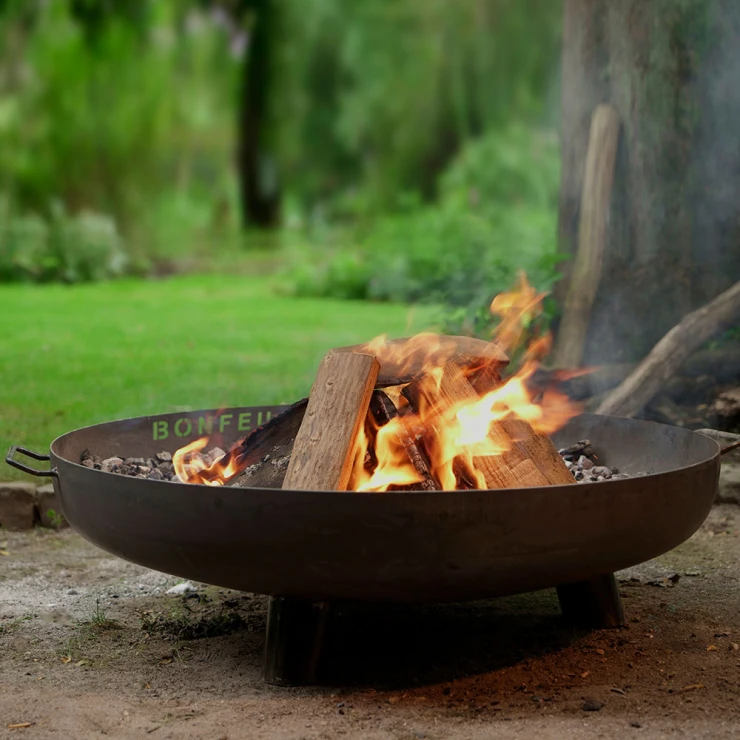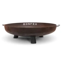 BonBowl Plus är en kraftig och elegant eldstad tillverkad av 3 mm tjockt cortenstål. Med sin robusta konstruktion, tre stabila ben och två praktiska handtag är den enkel att flytta och stabil även på ojämnt underlag. Den naturliga rostbruna ytan utvecklas över tid och ger både skydd och ett varmt, levande utseende som blir vackrare ju mer eldstaden används. Tack vare sin tåliga design kan BonBowl Plus stå utomhus året runt utan underhåll.