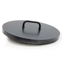 Det skyddande locket i svart stål är utformat för eldskålar Ø80 cm och läggs ovanpå skålen när den inte används. Locket skyddar mot regn, löv och smuts, hjälper elden att slockna snabbare genom att strypa syret och bidrar till att bevara eldskålens utseende över tid. Ett enkelt, robust och hållbart tillbehör för bekväm skötsel året runt.