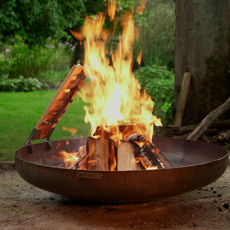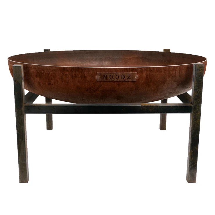 Den stora eldskålen från MOODZ är tillverkad i 3 mm tjockt cortenstål – ett material som utvecklar en varm, rostbrun yta med tiden. Den naturliga patinan skyddar stålet och gör att skålen kan stå utomhus året runt utan behov av målning eller underhåll. Med sin generösa diameter på 80 cm blir den en elegant mittpunkt som bjuder in till stämningsfulla kvällar och sociala stunder i trädgården.