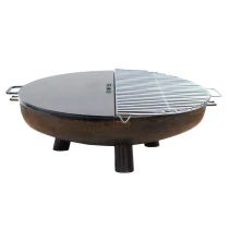 BonFeu Set med Eldskål Cortenstål med Fot 80 cm, Plancha Halvrund & Grillgaller Halvrund