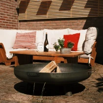 Denna robusta eldstad är tillverkad av 3 mm tjockt cortenstål – ett väderbeständigt material som utvecklar en varm, rostbrun yta över tid. Den naturliga oxidhinnan skyddar stålet mot vidare korrosion, vilket gör att eldstaden kan stå ute året runt utan underhåll. Eldskålen står stabilt på tre ben och är utrustad med två handtag som gör den enkel att flytta. Kombinationen av styrka, funktionalitet och industriell design gör den till en vacker mittpunkt i varje utomhusmiljö.