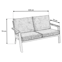 Komplet sæt – 2 lænestole, 2-personers sofa, bord og puder