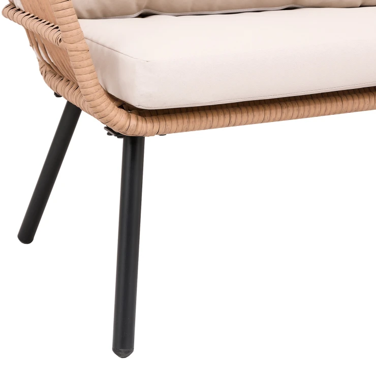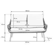 Sættet kendetegnes ved en moderne og tidløs form, der nemt passer ind i forskellige typer udendørsmiljøer. De bløde hynder og de generøse siddepladser gør det ideelt til både rolige stunder og sociale sammenkomster med familie og venner.