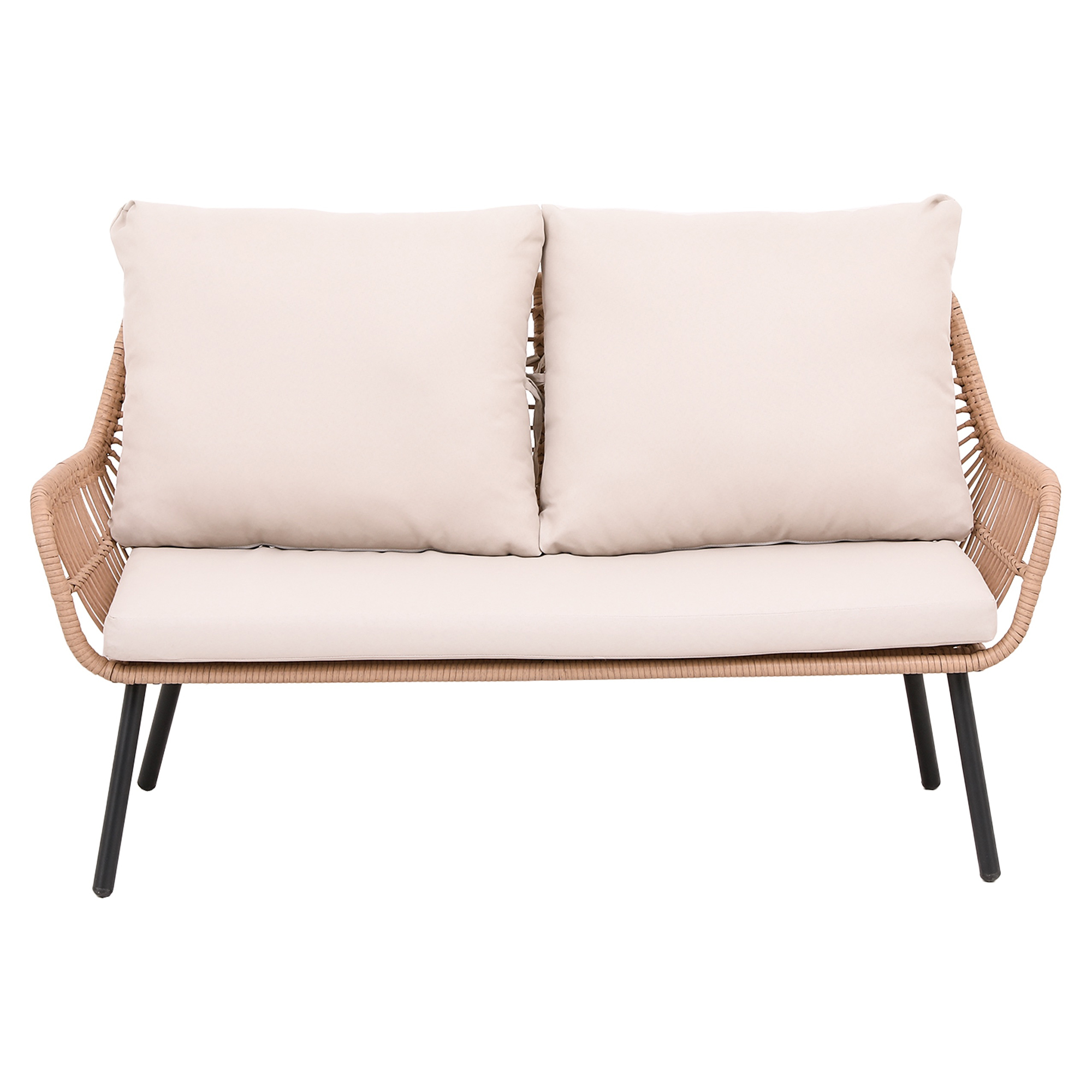 Havesæt med sofabord 90 cm, 2-personers sofa, 2 lænestole & puder Norven Rosa er et elegant og komfortabelt møbelsæt, der skaber et indbydende sted til afslapning udendørs. Perfekt til haven, terrassen eller altanen, hvor det kombinerer stilrent design med høj komfort.