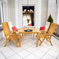 Viney kombinerar massivt trä, rena linjer och stabil konstruktion. Setet passar både moderna och klassiska utomhusmiljöer och ger en varm och välkomnande matplats.