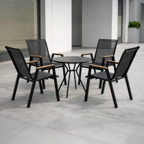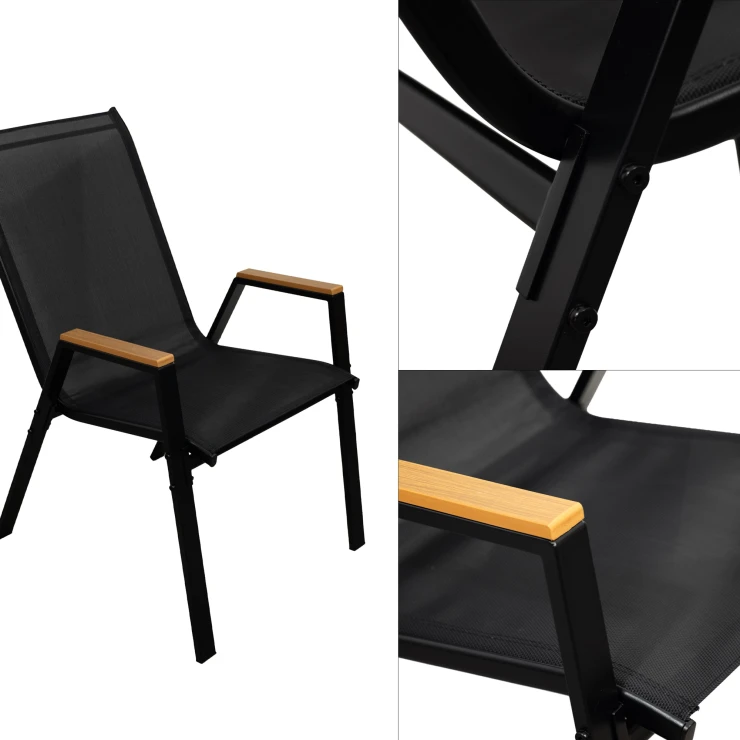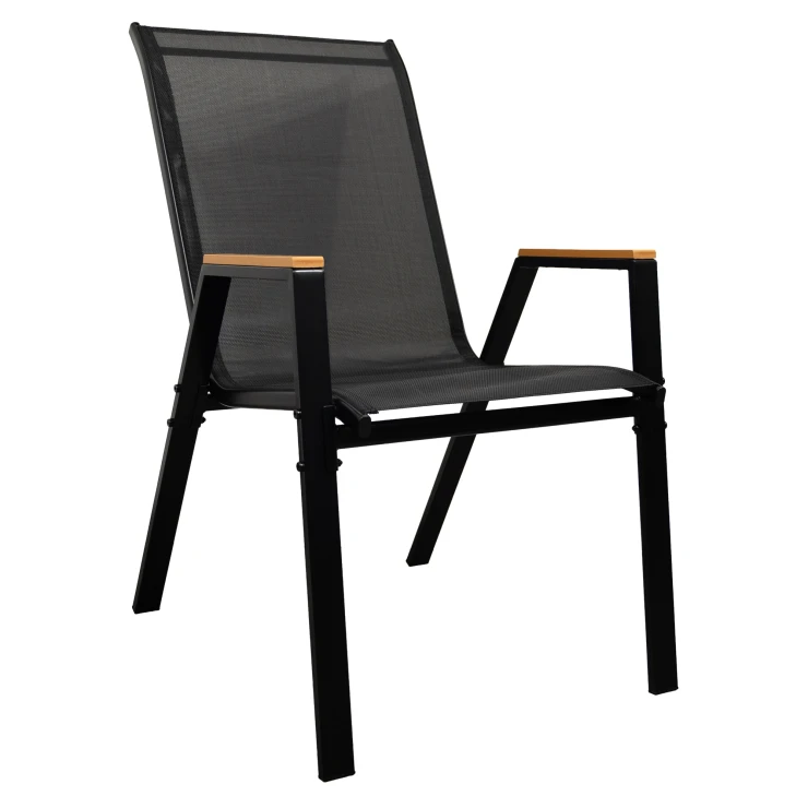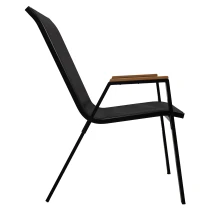 Stolen kombinerer slidstærke materialer med praktiske løsninger. Den pulverlakerede stålramme giver stabilitet og holdbarhed, mens sæde og ryg i textilene tilbyder god komfort og ventilation. Armlænene i polywood giver en naturlig følelse og ekstra bekvemmelighed.