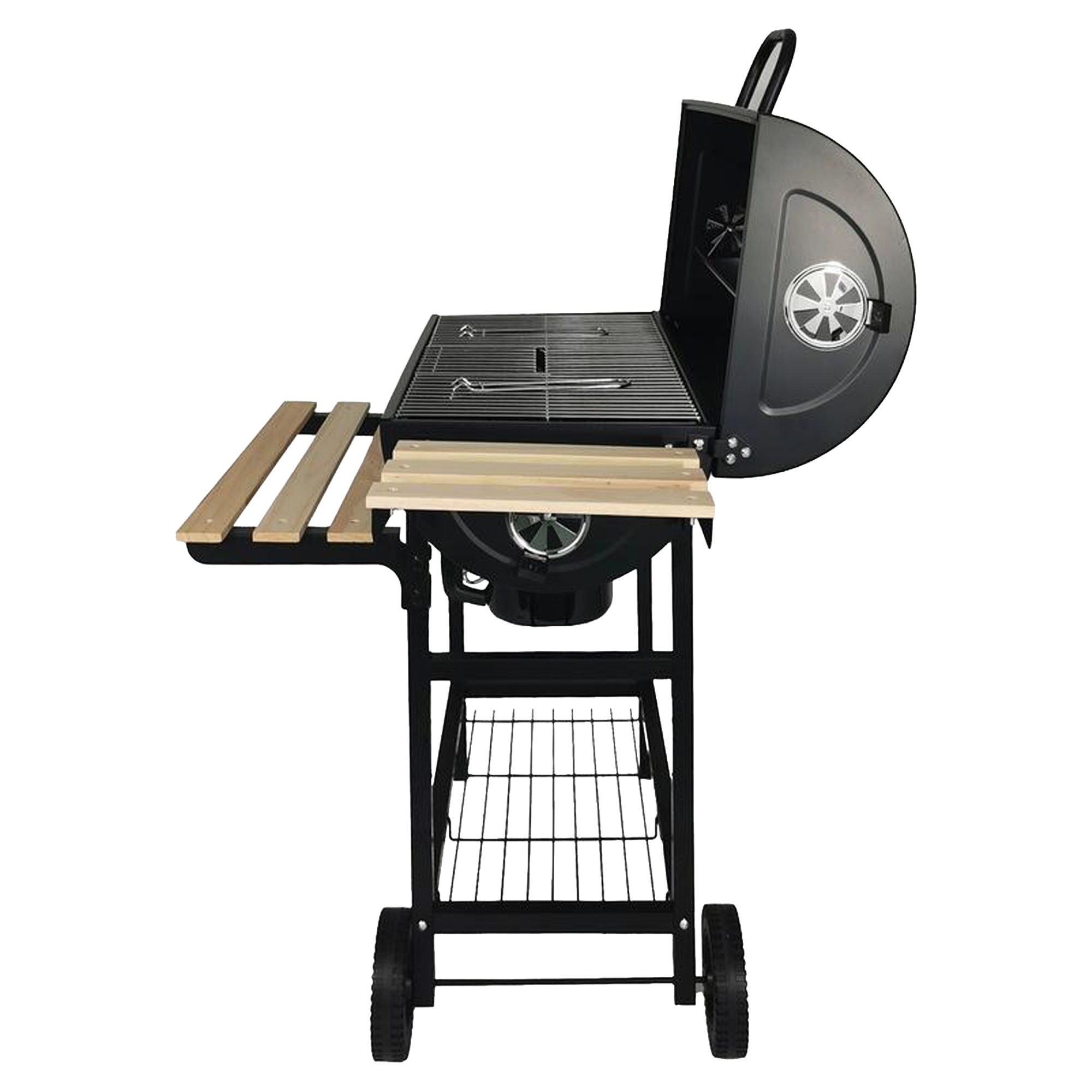 Oplev en ny niveau af grillning! Kulgrill BBQ Living kombinerer solid konstruktion, funktionalitet og elegant design. Udstyret med indbygget termometer, tre niveauer af grillriste samt en vogn med trædetaljer giver den maksimal komfort og fremragende grillresultater.