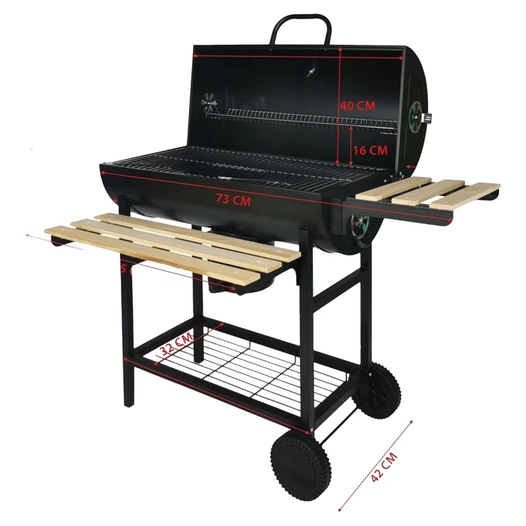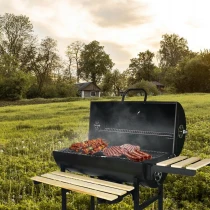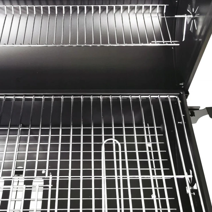 Takket være sine generøse mål og mobile konstruktion med hjul passer grillen både til familiesammenkomster i haven og større udendørs arrangementer. Den pulverlakerede stålkonstruktion giver holdbarhed, varmebestandighed og nem rengøring.