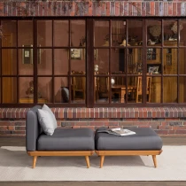 Fotpallen kan användas som förlängning av stolen eller som en separat sittplats. Den kompakta storleken gör setet lätt att placera även på små ytor.