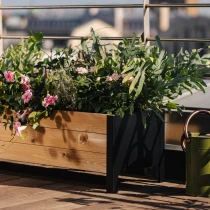 • Plantekassen er fremstillet af PEFC-certificeret nordisk træ med en materialetykkelse på 1,5/2 cm, hvilket giver en robust og holdbar konstruktion. Produktionen sker med fokus på miljøvenlige materialer og ansvarlige processer.