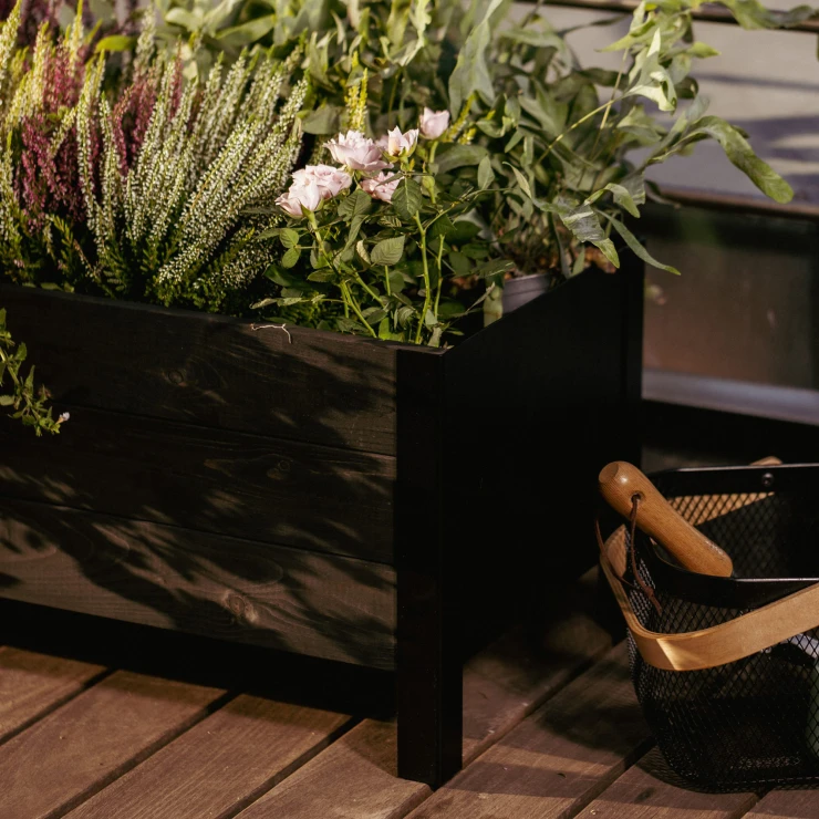• Plantekassen er fremstillet af PEFC-certificeret nordisk træ med en materialetykkelse på 1,5/2 cm, hvilket giver en robust og holdbar konstruktion. Produktionen sker med fokus på miljøvenlige materialer og ansvarlige processer.