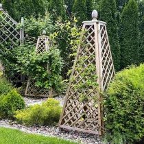 Kollektionen finns i två höjder – 150 cm och 180 cm – så att du enkelt kan välja rätt proportioner för rosor, klematis, kaprifol och andra klättrande växter.