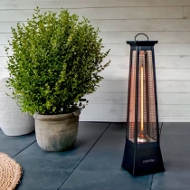 • Den avancerade kolfiberlampan garanterar en livslängd på över 10 000 timmar. Detta portabla värmesystem optimerar energiförbrukningen och levererar effektiv värme utan att öka energikostnaderna.
