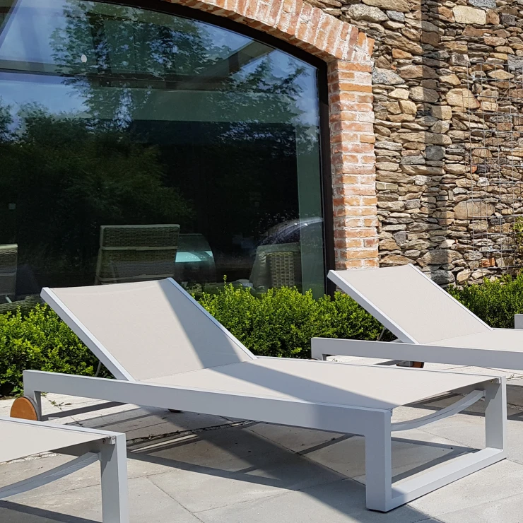• Möblerna är byggda på en stabil aluminiumram som är pulverlackerad med strukturell polyesterfärg. Detta ger mycket hög motståndskraft mot korrosion, UV-strålning, repor och fukt, vilket säkerställer lång hållbarhet i alla väderförhållanden.