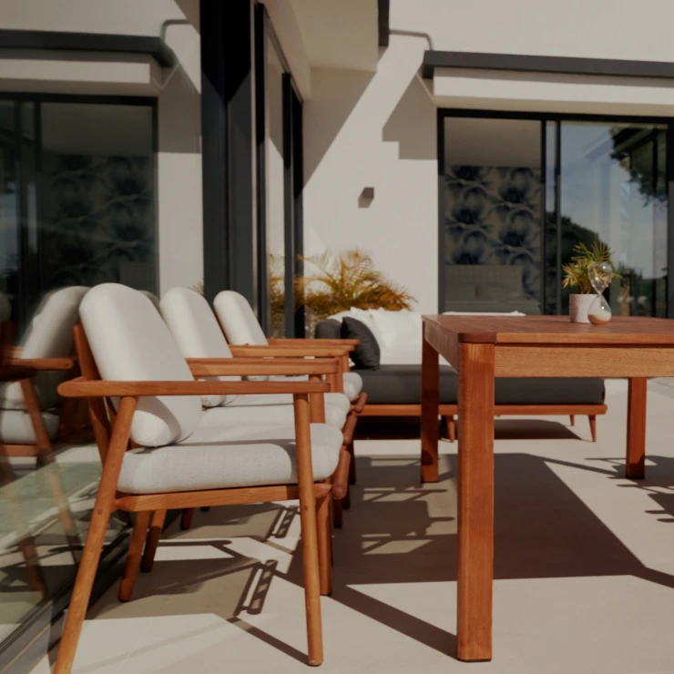 Möbelramarna är tillverkade av robinia-akacia som oljats med ett dedikerat naturligt olja. Träet erbjuder första klassens väderbeständighet och lämpar sig perfekt för nordiskt klimat och året-runt användning.