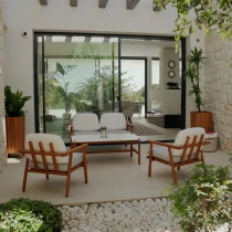 • Linwood kombinerar robust trä, mjuka linjer och en tidlös design som passar i alla utomhusmiljöer – från privata terrasser till restauranger och hotell. Serien ger en varm, inbjudande och elegant känsla, samtidigt som materialen garanterar lång livslängd och enkelt underhåll.