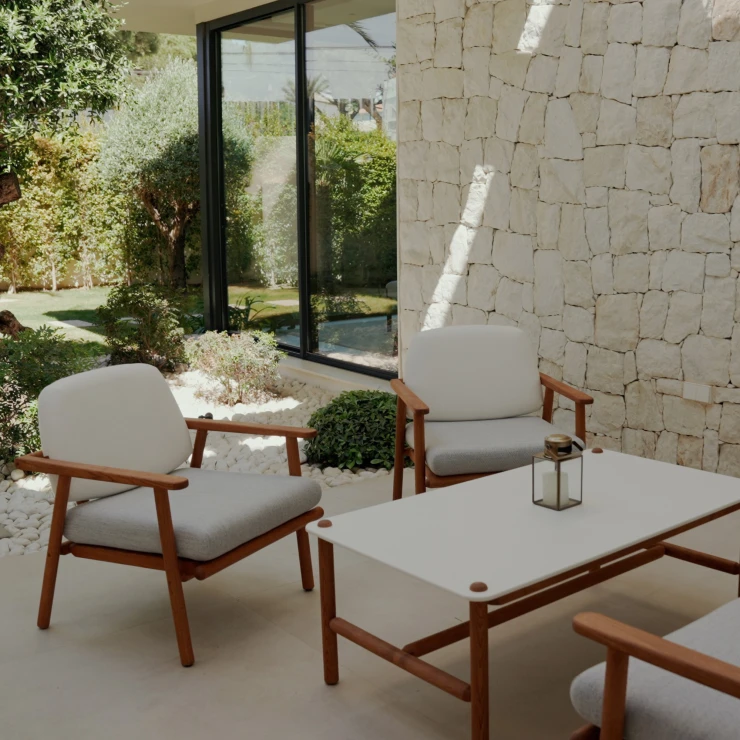 Kombinera fritt mellan stolar, soffa och flera olika bord för att skapa en komplett och harmonisk trädgårdsuppsättning utifrån dina behov.