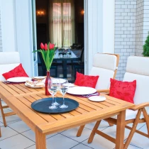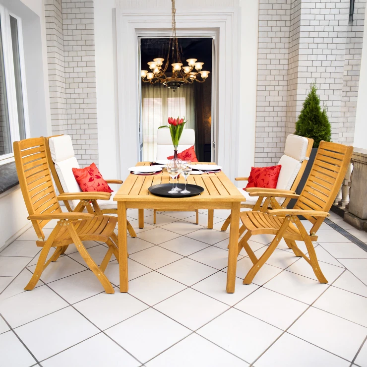 Möblerna är tillverkade av robinia-akacia som oljats med ett dedikerat naturligt olja. Träet erbjuder första klassens motståndskraft mot väderförhållanden och är mycket tåligt mot fukt, sol och temperaturskillnader.