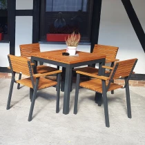 Bord och sitsdetaljer är tillverkade av robinia-akacia som oljats med ett dedikerat naturligt olja. Träet har första klassens motståndskraft mot väder och vind och lämpar sig utmärkt för långvarigt utomhusbruk i varierande klimat.