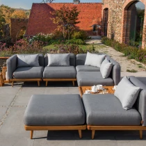 Kombinera fritt mellan stolar, hörndelar, fotpallar och bord för att skapa din perfekta trädgårdsgrupp med möbler från Ravensby.