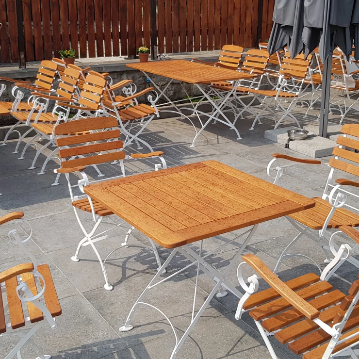 Sitsar och bordsskivor är tillverkade av robinia-akacia som oljats med ett dedikerat naturligt olja. Träet erbjuder första klassens väderbeständighet och är idealiskt för långvarigt bruk i varierande klimat.