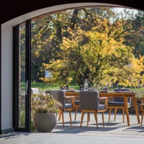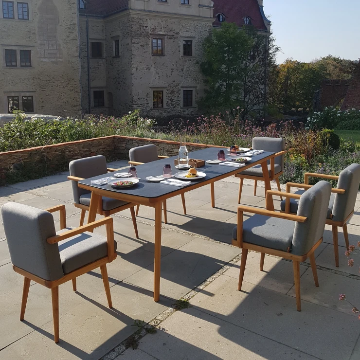 Möbelramarna tillverkas av robinia-akacia som oljats med ett dedikerat naturligt olja. Träet erbjuder första klassens motståndskraft mot väderförhållanden och är mycket hållbart i utomhusmiljö.