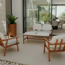 • Linwood kombinerar robust trä, mjuka linjer och en tidlös design som passar i alla utomhusmiljöer – från privata terrasser till restauranger och hotell. Serien ger en varm, inbjudande och elegant känsla, samtidigt som materialen garanterar lång livslängd och enkelt underhåll.
