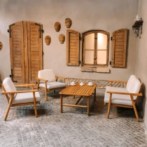 Möbelramarna är tillverkade av robinia-akacia som oljats med ett dedikerat naturligt olja. Träet erbjuder första klassens väderbeständighet och lämpar sig perfekt för nordiskt klimat och året-runt användning.