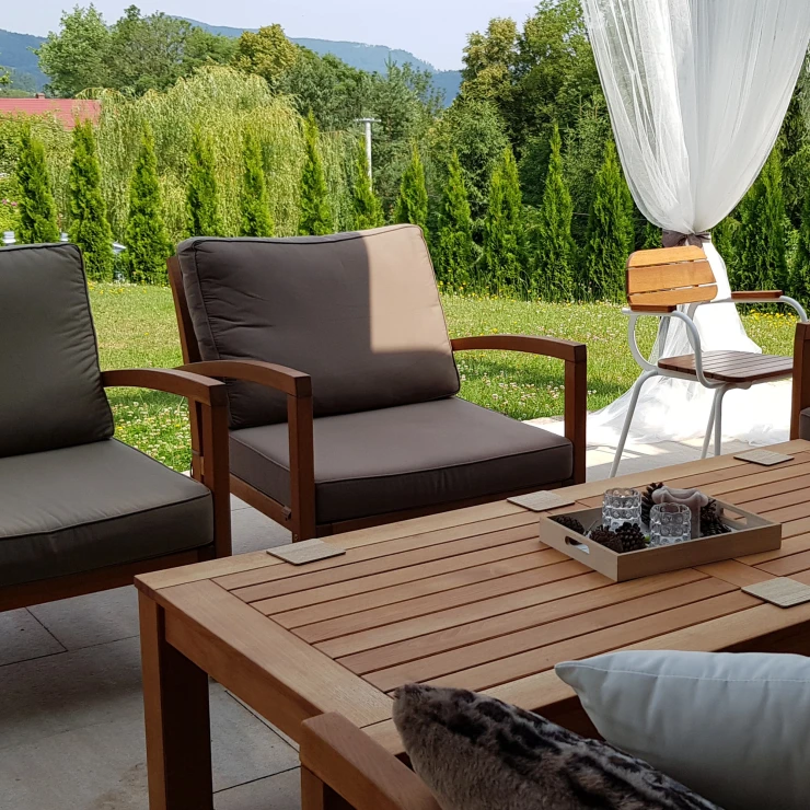 Alla möbelramar tillverkas av robinia-akacia som oljats med ett dedikerat naturligt olja. Träet erbjuder första klassens motståndskraft mot väder och vind och är idealiskt för långvarig utomhusanvändning.