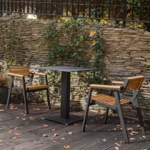 • Rosavia är en serie med hög kvalitetsstandard och modern utomhusdesign. Serien består av två delar: Trädgårdsstol med Armstöd och Trädgårdsbord 80x80 cm. Kombinationen av aluminium och robiniaträ ger serien en elegant, hållbar och lättskött karaktär.